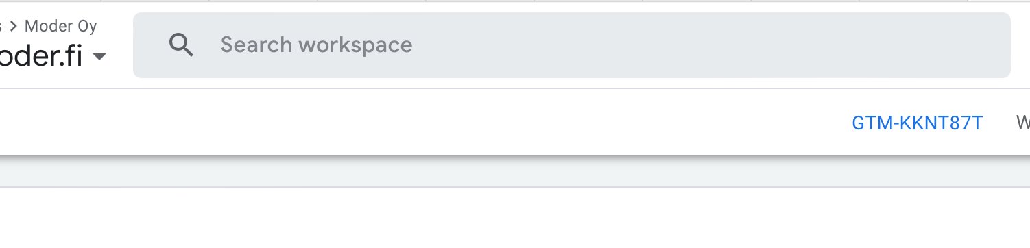 Laita se Moderin verkkokauppa-asetuksiin GTM-kohtaan