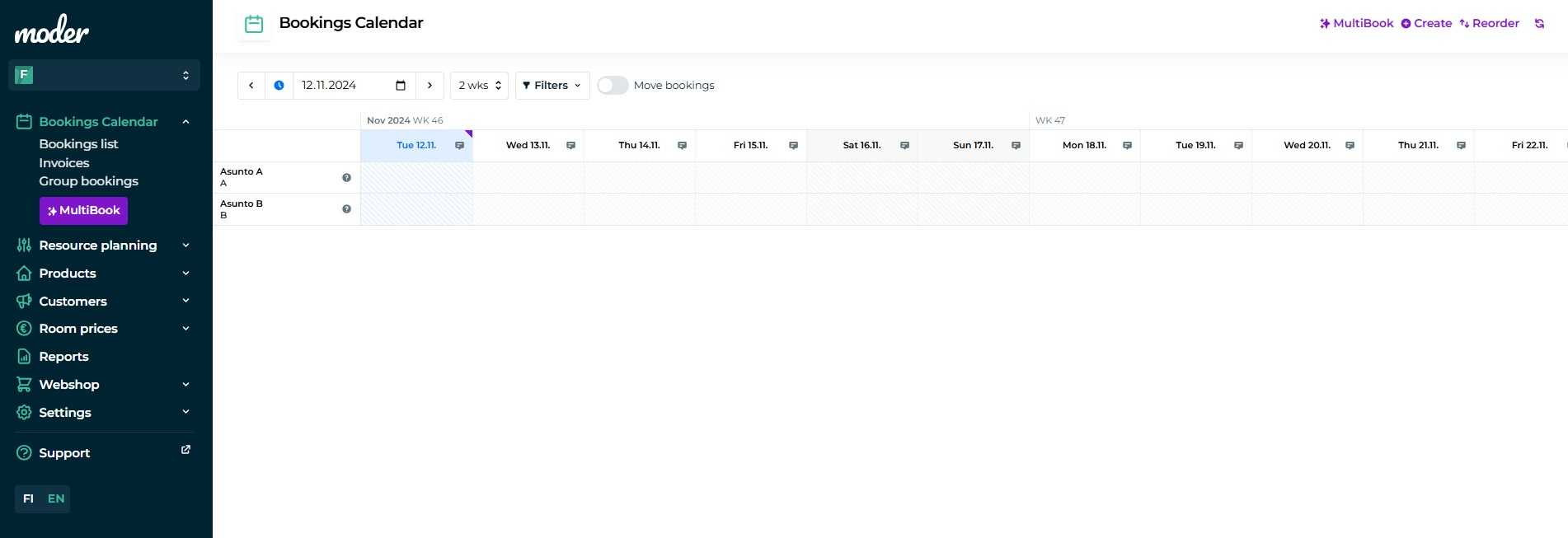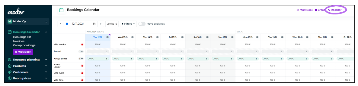 Go to the booking calendar and click the "Reorder" button in the top right corner.