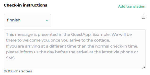 You can add all essential information regarding the guest's check-in to this section. These instructions help the guest prepare for their arrival and easily find everything they need, enhancing their experience and reducing uncertainties during the check-in process.