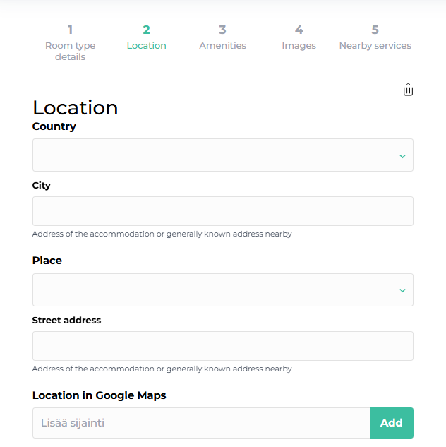 You can also add the product's location to Google Maps, allowing travelers to easily view the location via the webshop. If you save the Google Maps address, remember to click the "Add" button displayed next to it.
