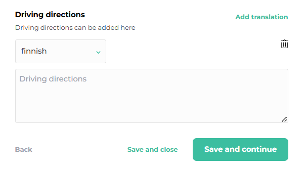 If you leave the translation field empty, the name you’ve set will appear in all online store language versions as is. If you want a different name for your accommodation in another language, add the translation for the name in the respective field.