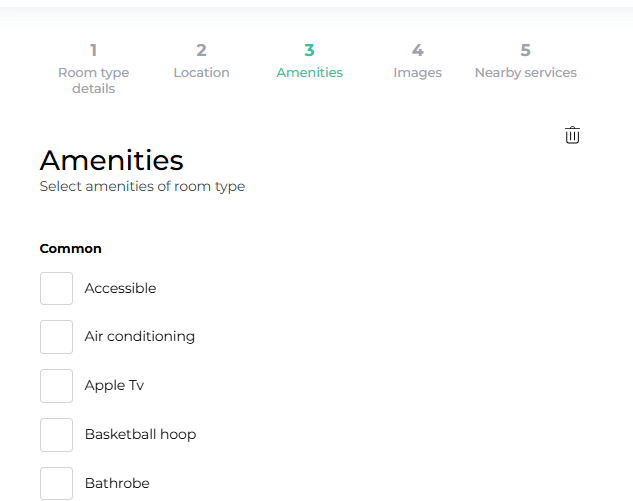 On this tab, you can check the amenities available in your product. Only the checked amenities will be displayed in the webshop. Here, you can also allow pets in your product by checking the "Pets allowed" box.