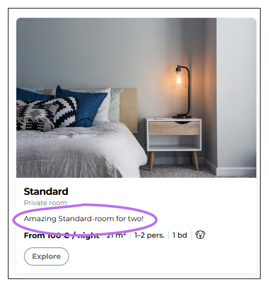 The long description will be available for the traveler to read when they explore the property in more detail - for example, through the "Explore" button in our example below.