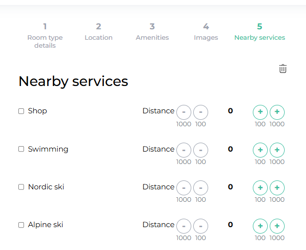 Here you can specify, if desired, how far your product is from key services.