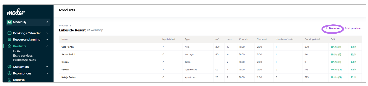 Note! At this stage, it’s crucial to structure your Moder system to match the setup of your external sales channels (e.g., Booking.com, Airbnb, Expedia). This alignment is necessary to enable future integrations with these platforms. Integration cannot be completed if the structures in Moder and the external sales channels differ.