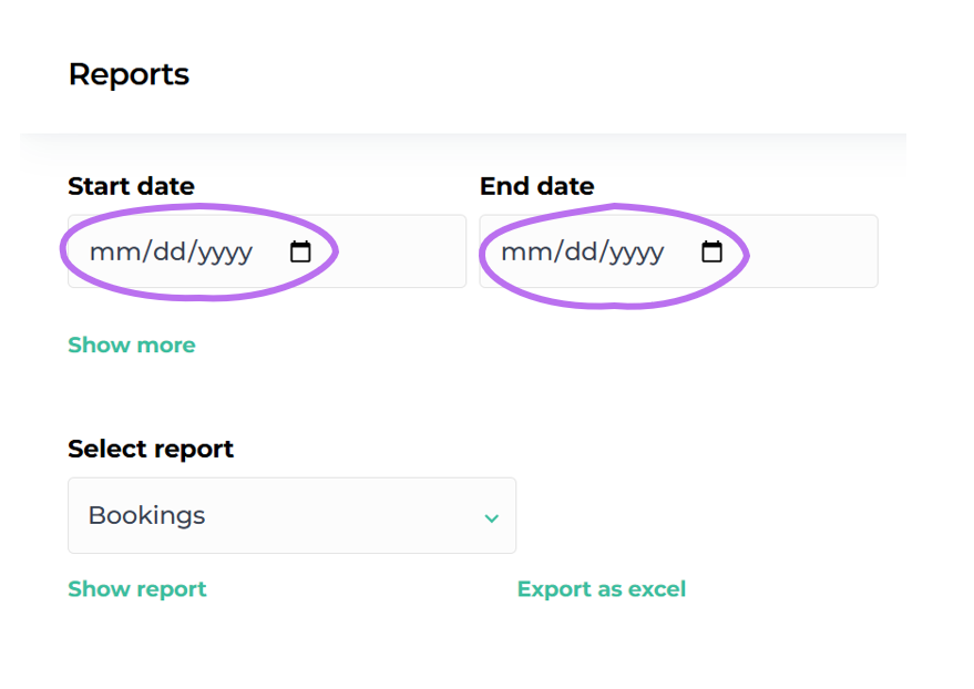 - Settled bookings: Displays all bookings completed during the selected period. This report provides an overview of bookings that concluded during the specified time frame.