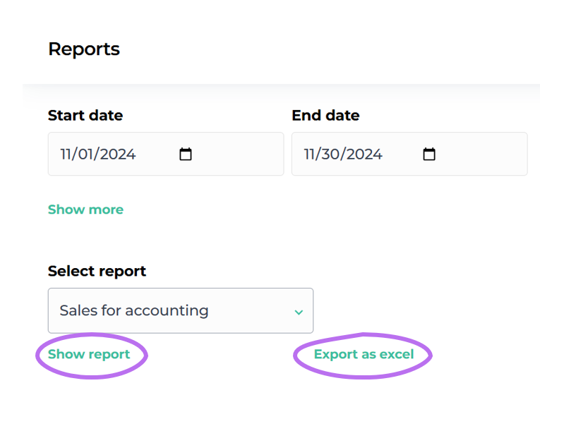- Sales for accounting: The ideal report for accounting purposes, including sales, prepayments, and unpaid invoices on a monthly or selected timeframe basis.