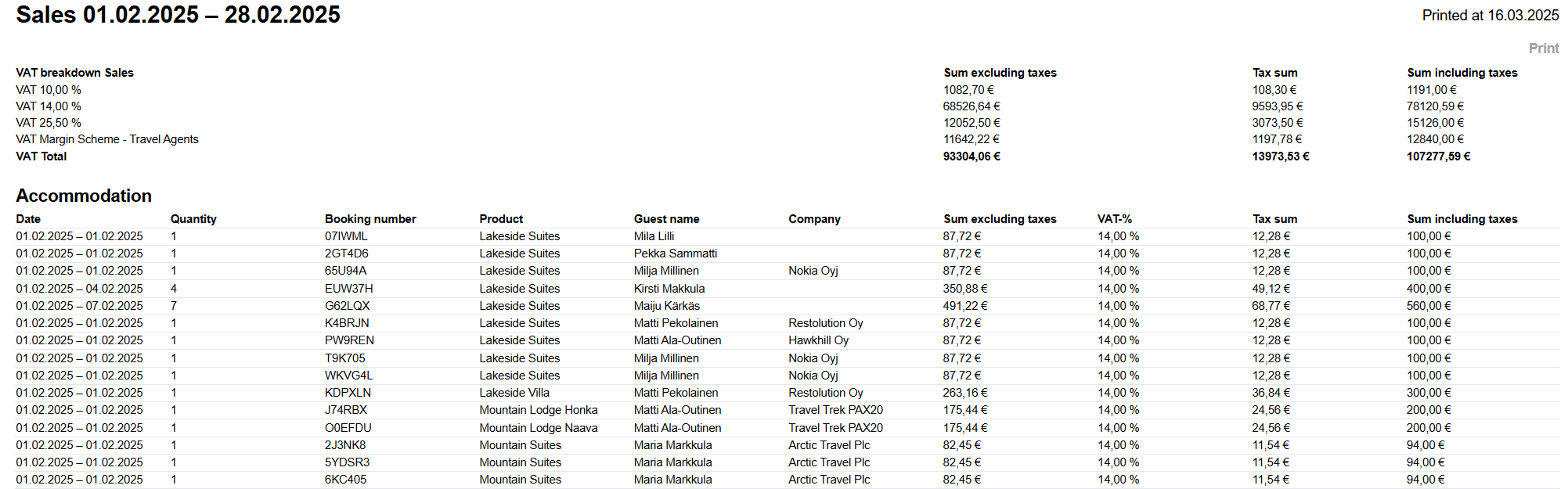 This report is a useful tool for analyzing sales and accommodation booking statistics, particularly for breaking down bookings by source and reporting them to authorities like Statistics Finland.