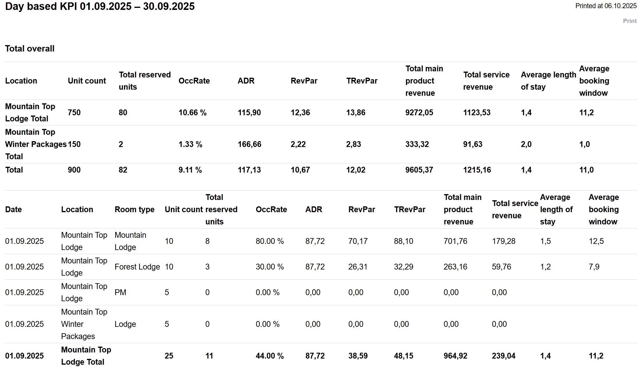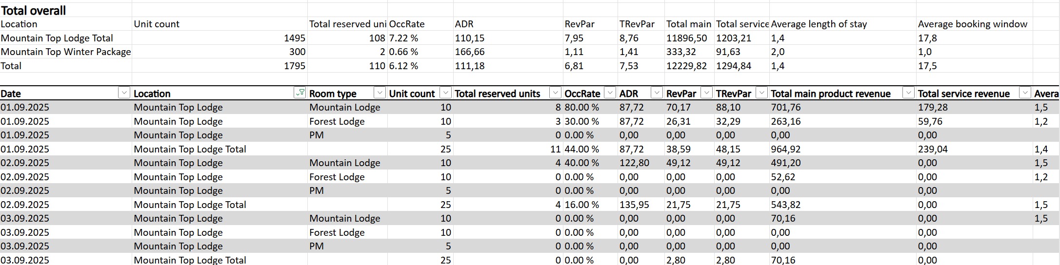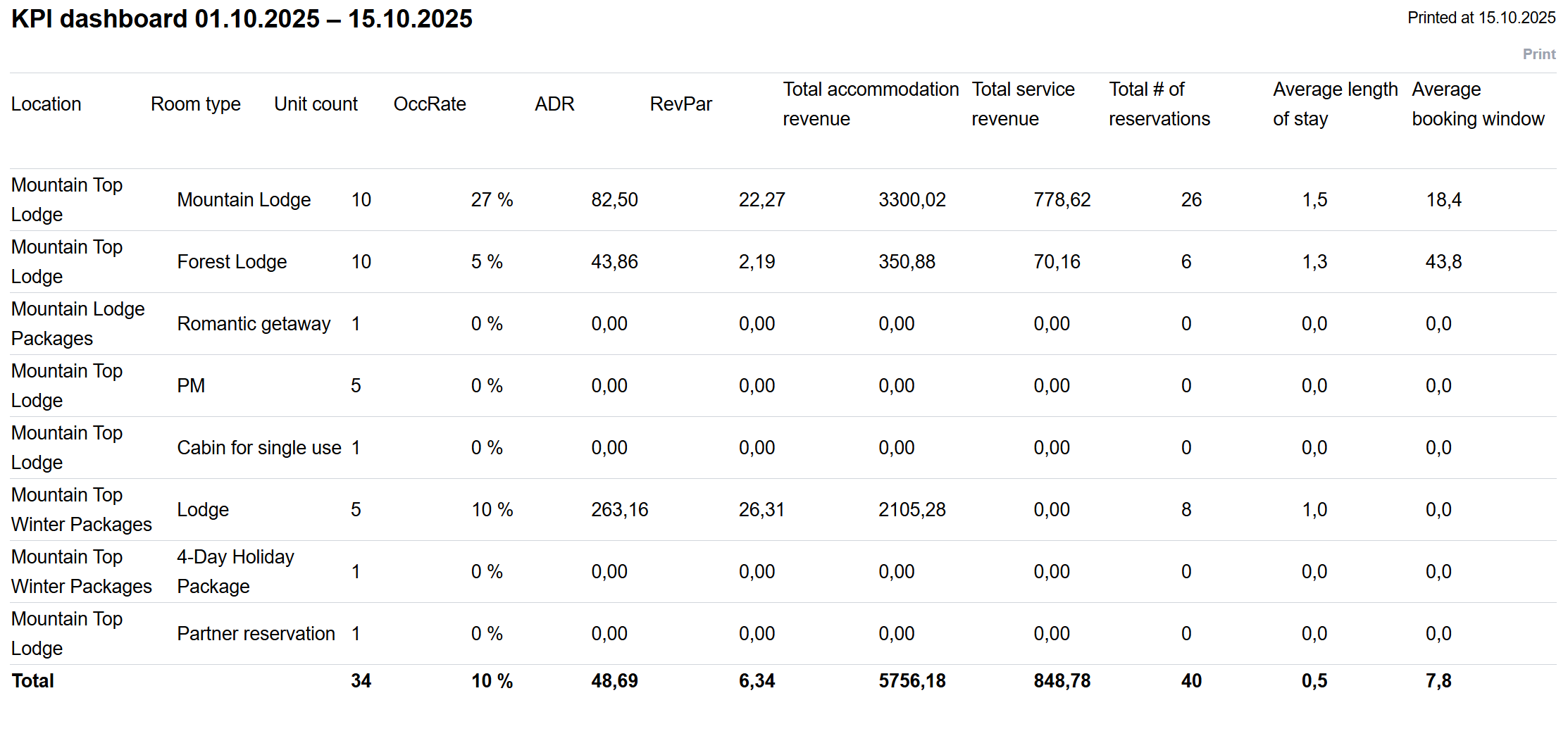 The report provides valuable insights into the performance of your accommodation, supporting data-driven decision-making. By tracking these metrics, you can monitor profitability, optimize strategies, and improve results over time.