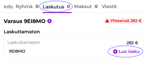 Tee lasku normaalisti varauksen Laskutus-välilehdeltä.