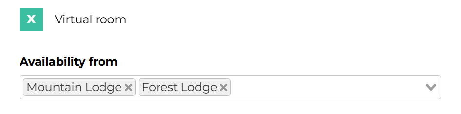 Activate the "Virtual room" setting and select the room types from which availability will be fetched in the "Availability from" menu (e.g., Standard, Deluxe, Suite). The customer will not see the exact room type; the reservation will be determined based on available rooms.
