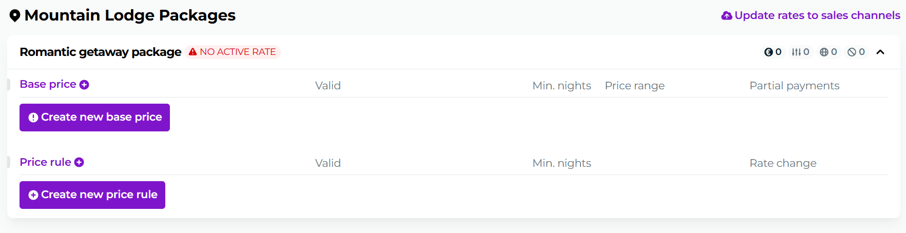 Create a Base Price for the package as you normally would, and define the rates, additional person fees, and validity period.