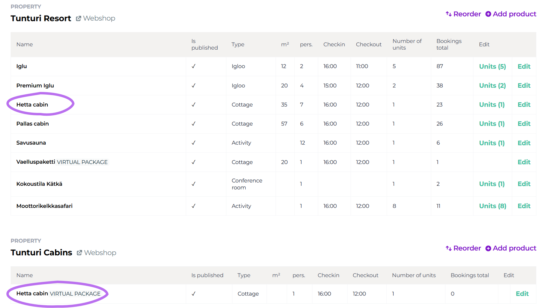 Virtual packages can also be used for seasonal or event-specific bookings, such as Midsummer, Christmas, or Easter accommodation packages. A virtual package seamlessly combines lodging or activity product and extra services into an easy-to-book offering available through your webshop.