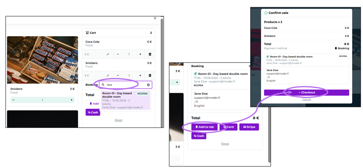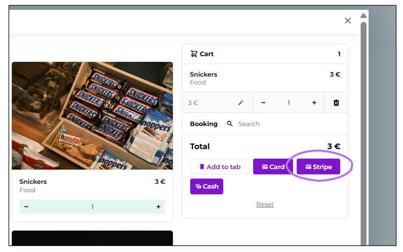 With it, you can charge customers at reception and add products (Extras) to either their room bill or activity booking.