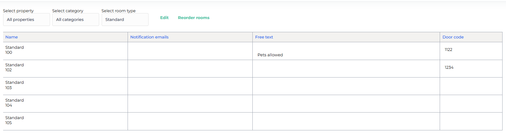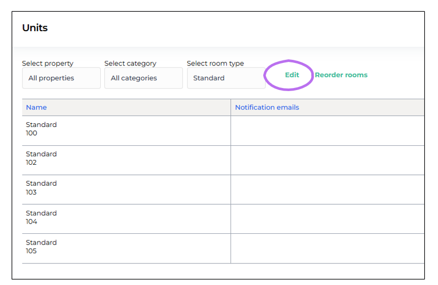 And now you can start naming your units. In this example, the Standard rooms have been named according to their room numbers.