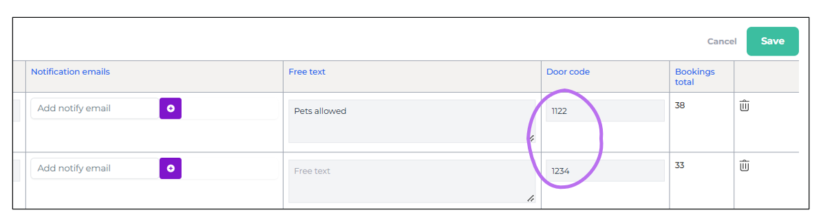 Note! If you plan to use a locking integration in Moder, please refer to the Integrations course. In this case, you should not set a door code here. Instead, follow the instructions for the locking integration and the Integrations course. Locking integrations generate a unique door code for each booking.