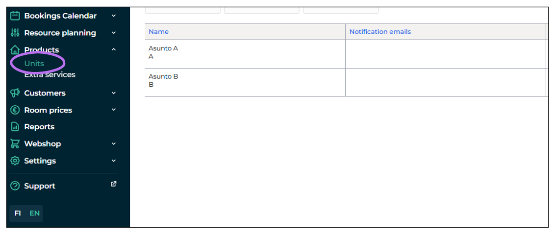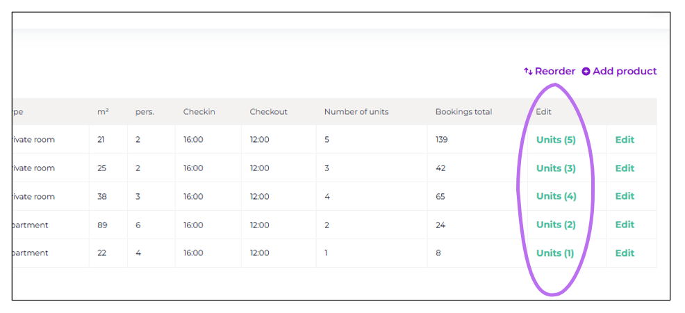 As mentioned earlier, units in Moder refer to an individual apartment, cabin, room, product, or even a sauna.