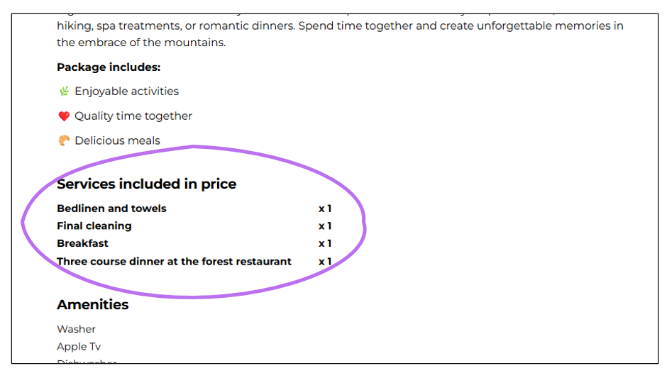 Including an extra service in the accommodation price