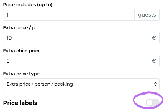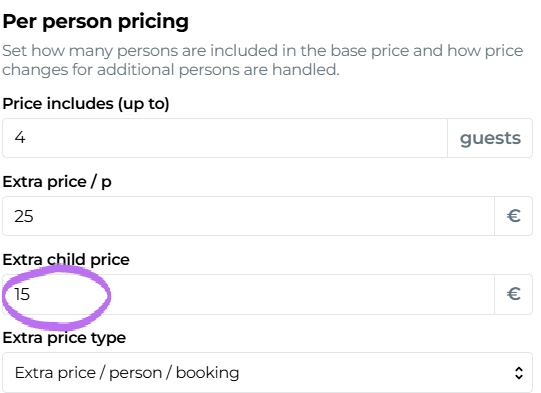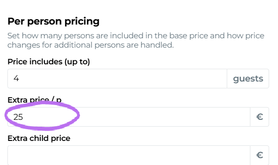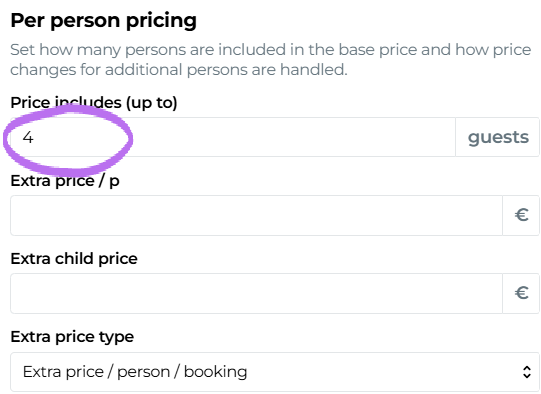 For example, "Price includes 4 guests" means the base price covers participation for four people. After this, you can set the charges for additional participants.