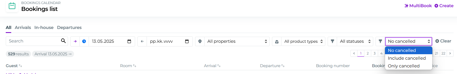 - Other Filters: Show all bookings, hide cancelled ones, or view only cancellations — whichever suits your current needs
