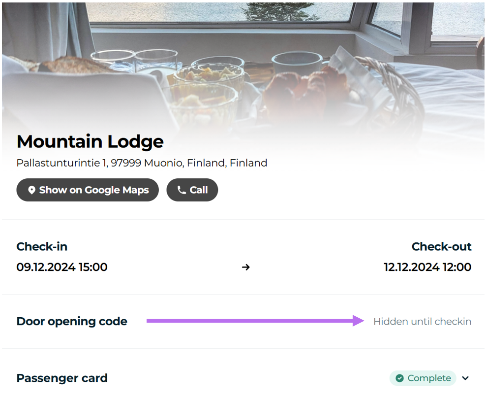 - This specific door code becomes visible to the customer in GuestApp as soon as their check-in time starts.