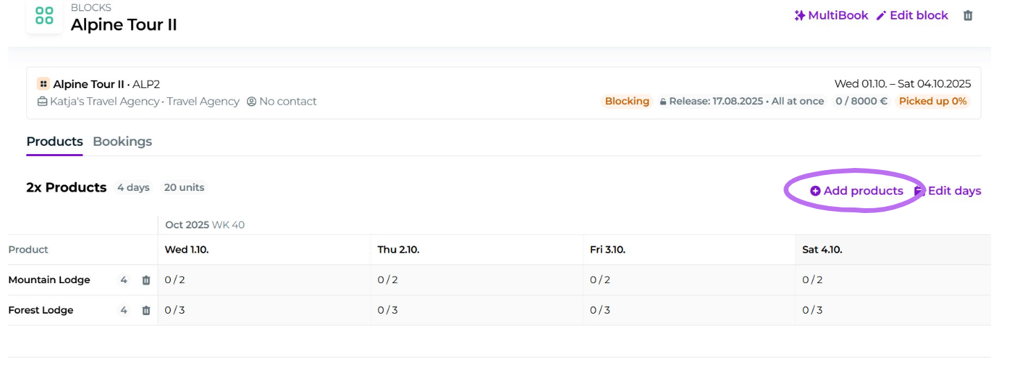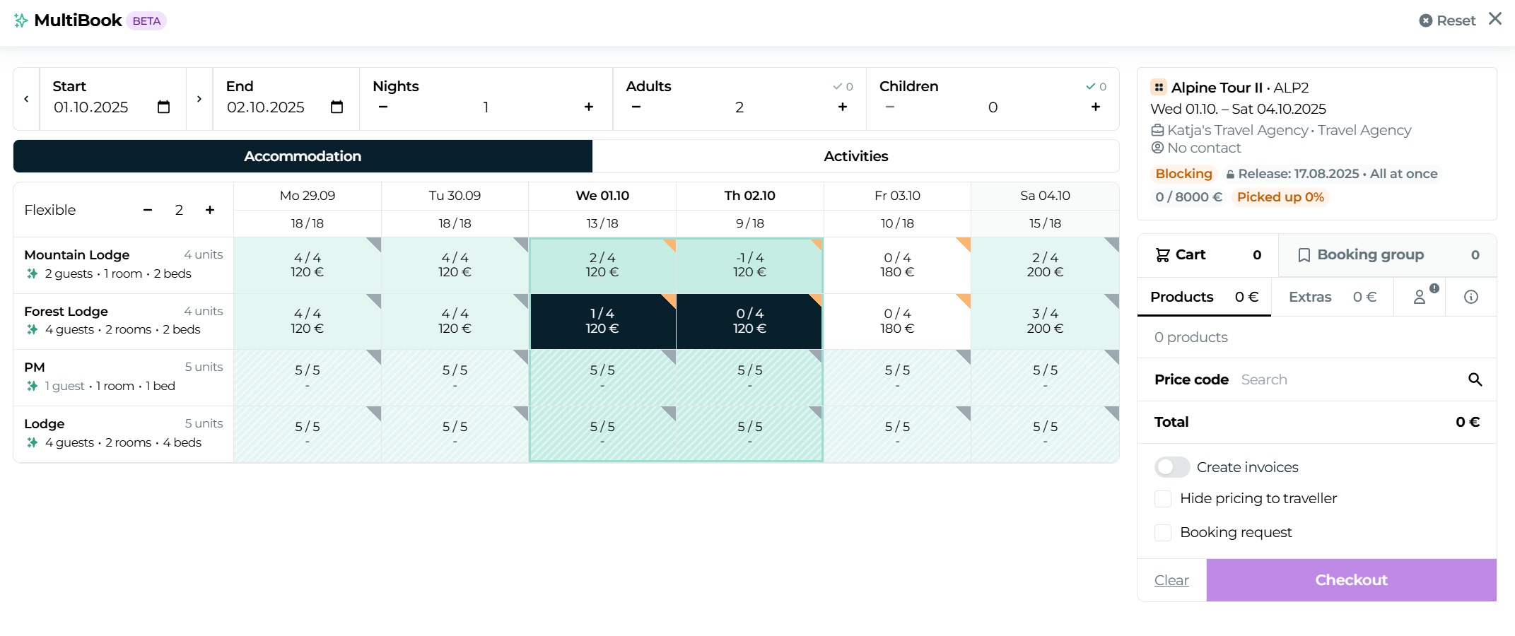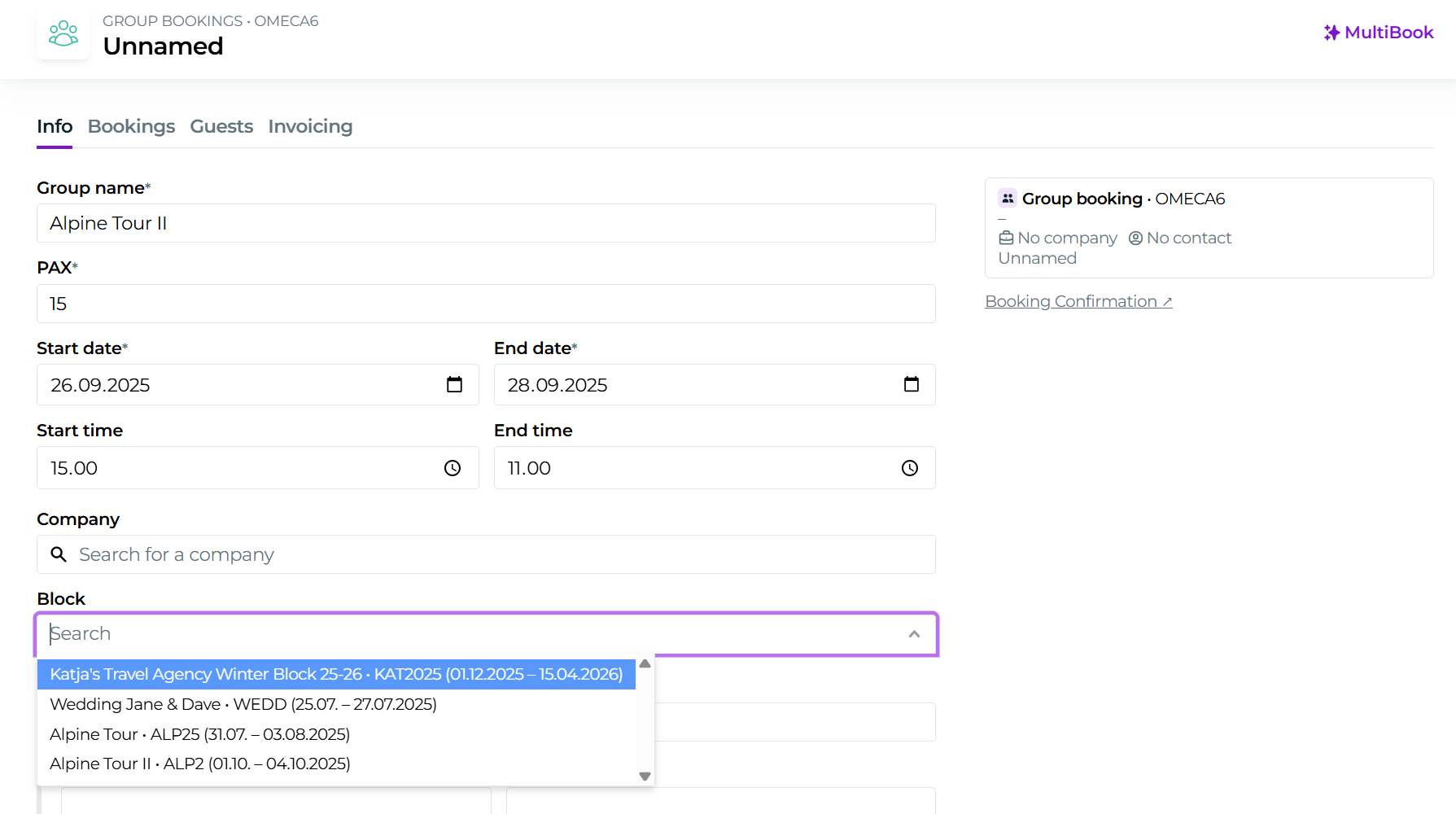 Then create the bookings as usual from the group booking’s "Bookings" page using MultiBook.