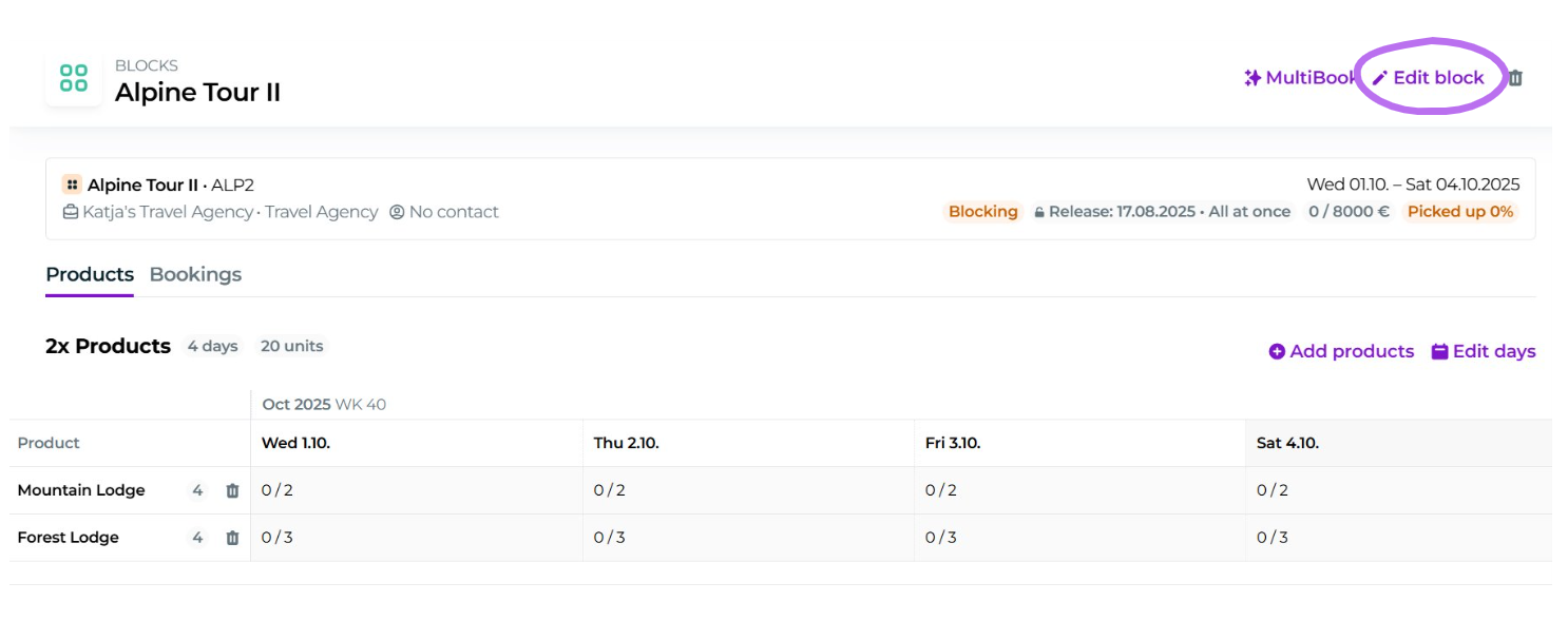 To edit the basic information of a block, click to open the block. Then click the "Edit block" button in the upper right corner.