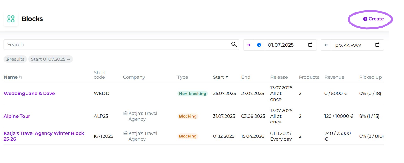 1. If you are creating a block for example for a travel agency or a company, please first create a company profile for them under "Customers" ➝ "Company" section.