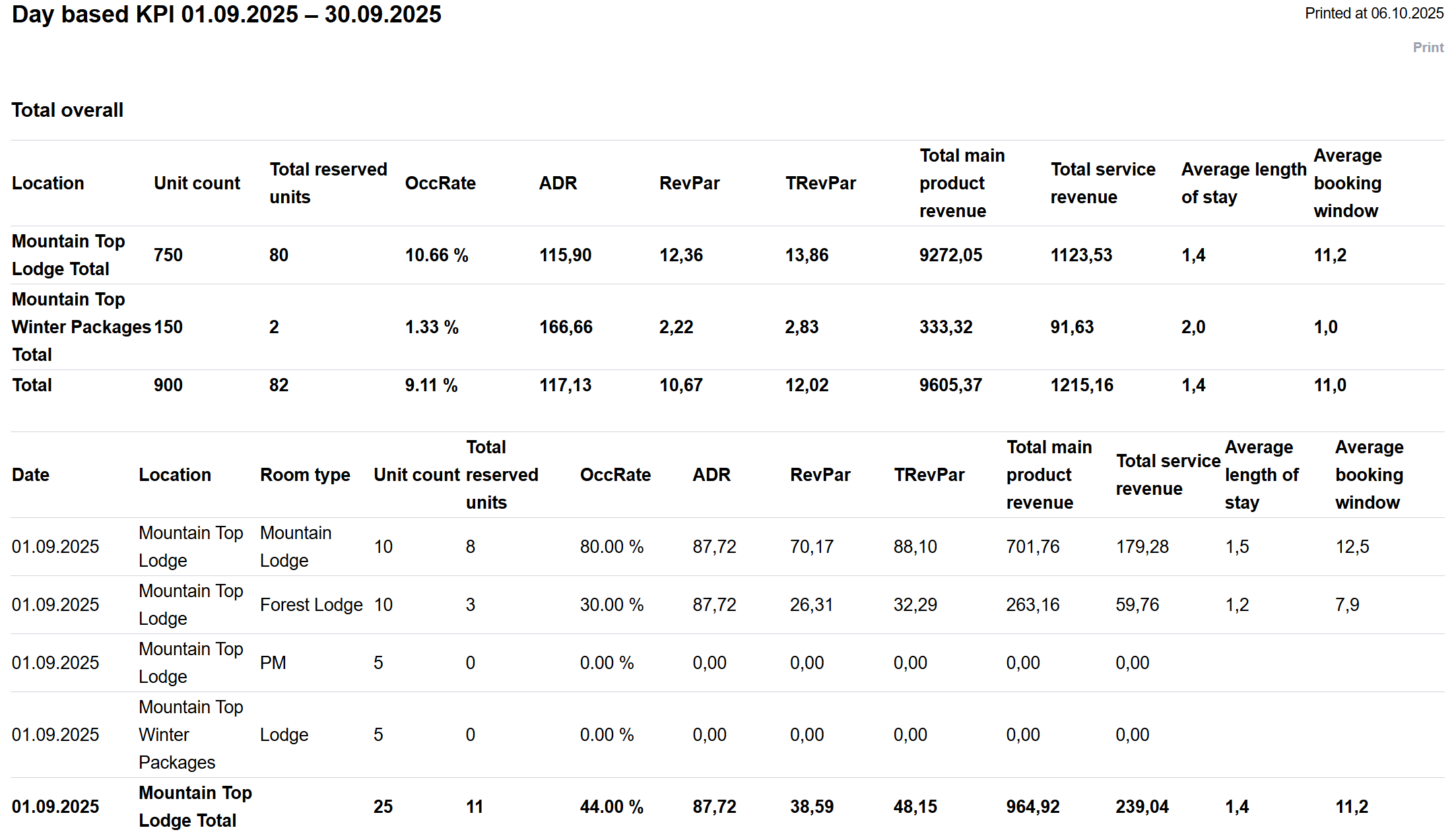 The new daily KPI report (Key Performance Indicator report) gives you access to the most important hospitality industry metrics, helping you monitor your company’s performance accurately and in real time: