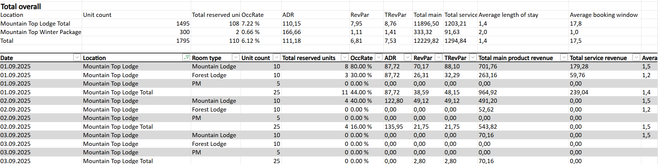 Total service revenue – shows how much income comes from extra services that are booked together with the accommodation