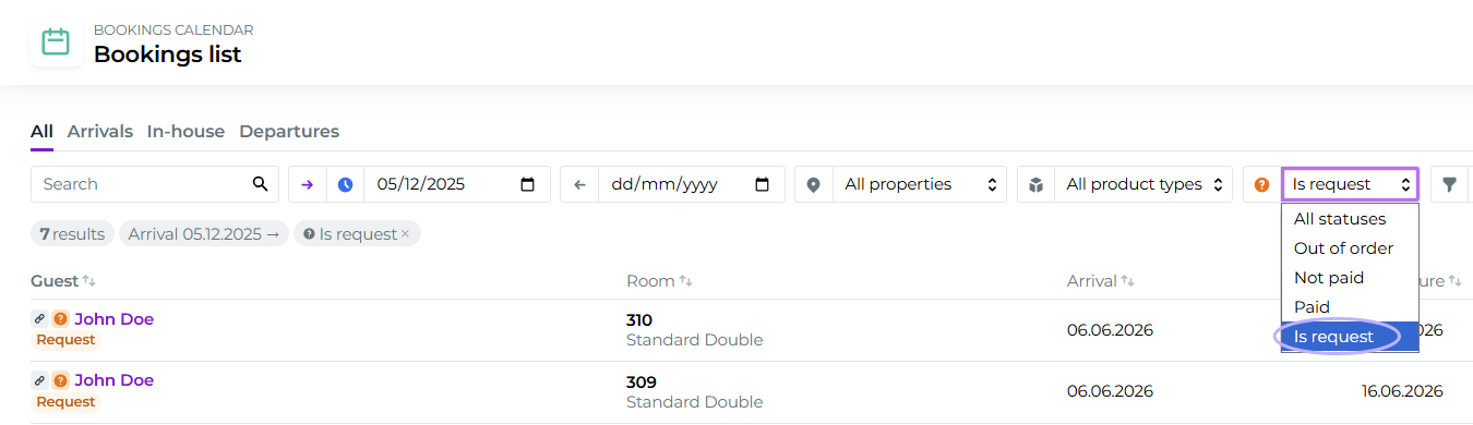Filter by requests in Bookings list